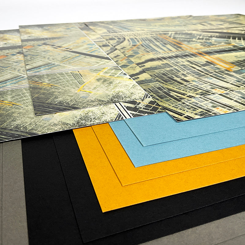 Package of twelve sheets of premium 12x12" scrapbook papers, a mix of printed and plain from the page kit.