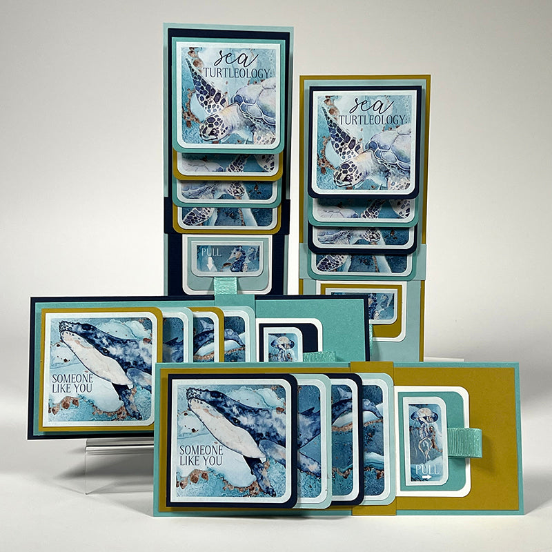 In this virtual workshop, you'll learn to make a set of four slimline waterfall-style cards from five sheets of paper. So much more than a card sketch, our card formulas offer cutting and assembly instructions, as well as a video tutorial.